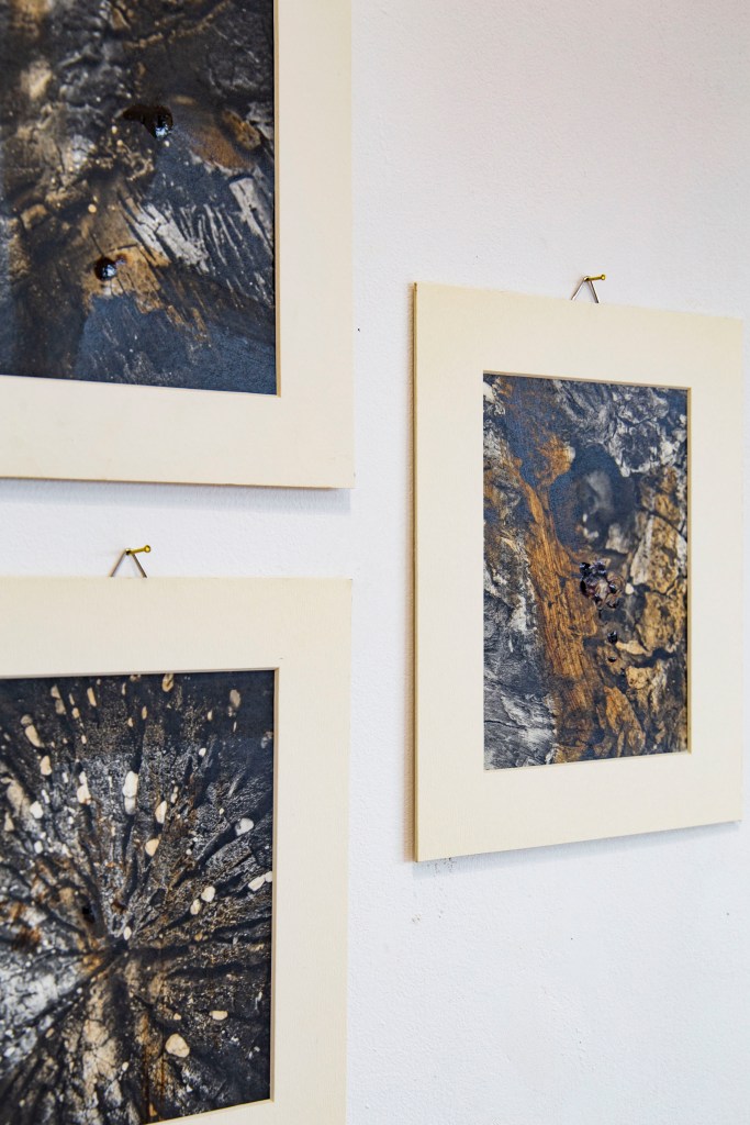 Mappe di isole immaginarie poiché le “isole” prodotte sono formate da elementi naturali come semi, legumi, caffè, foglie , tè, conchiglie su cartoncino colorato blu (legato al mare) e rosso (legato al vuolcano) in vari formati attraverso la tecnica della cianotipia su supporto di legno