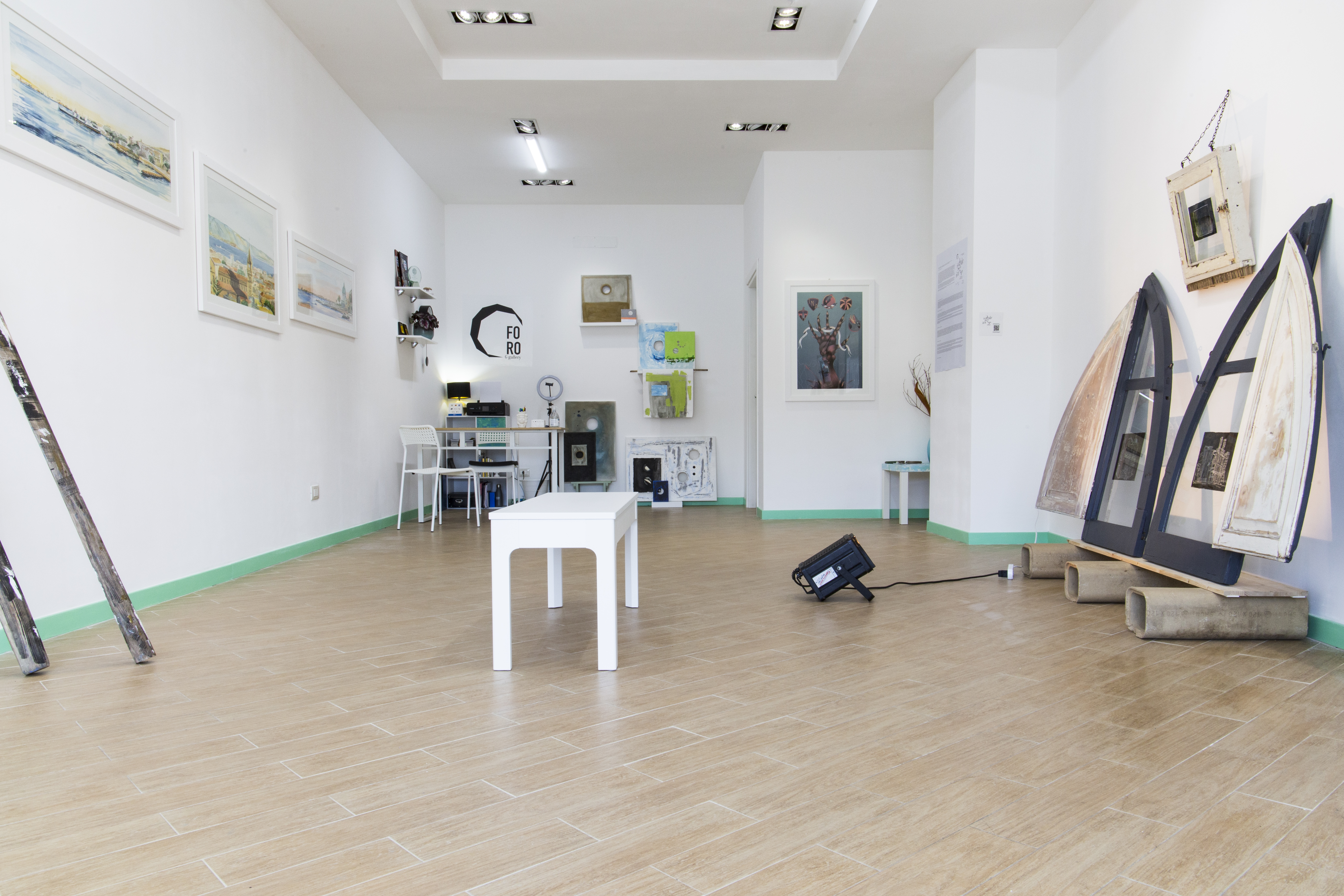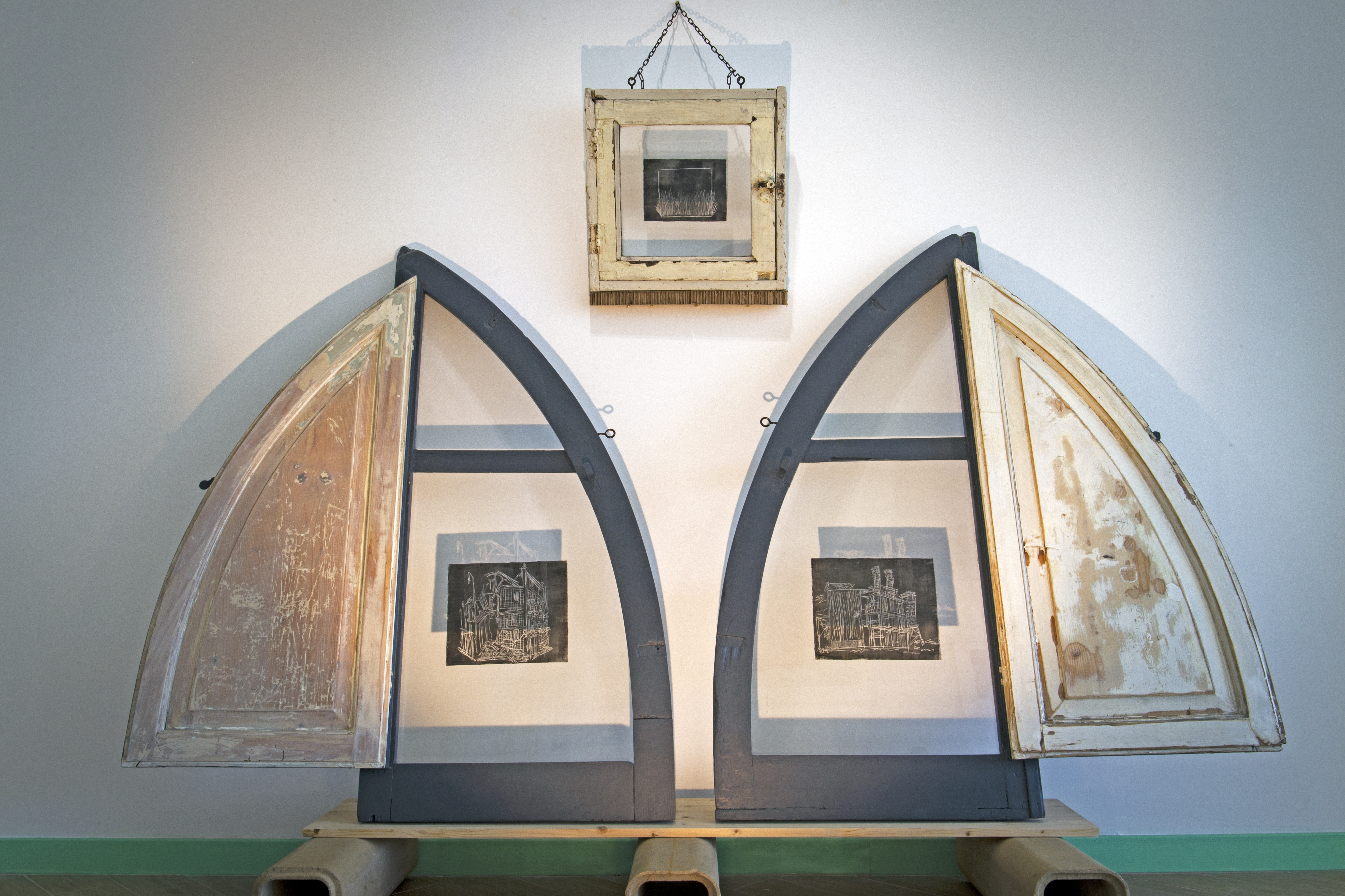 Four local artists, three architects and one scenographer, who live in different regions of the country, displaying eight artworks made with different techniques.